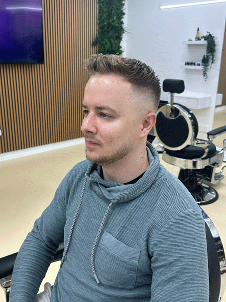 2020-ban kezdtem el ismerkedni a szakmával, amikor a COVID-időszak közepén először a testvérem, majd később ismerősök haját is vágtam. Ekkor még iskolába jártam, de az érettségi után rájöttem, hogy ez a hivatás sokkal közelebb áll hozzám, mint bármelyik egyetemi irány. Elvégeztem a szakmát, közben női szalonban szereztem gyakorlatot, és férfi frizurákkal is foglalkoztam. Ma már főállásban dolgozom, és most tudom igazán tökéletesíteni a technikai tudásomat, miközben továbbra is szenvedéllyel fejlesztem magam a szakmában.